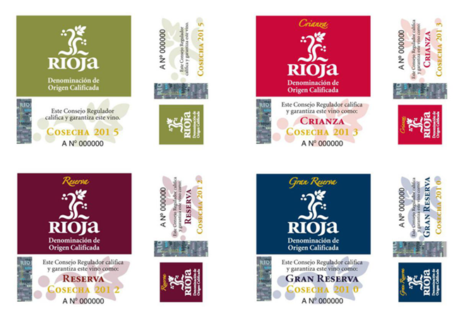 里奧哈產區不同陳釀級別葡萄酒的標識