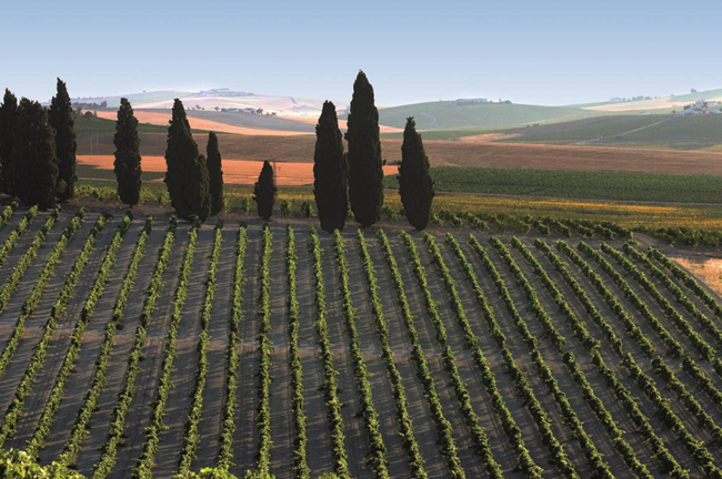 雪莉酒可以使用三個(gè)葡萄品種來(lái)進(jìn)行釀造,分別是帕洛米諾(Palomino)、佩德羅-希梅內(nèi)斯(Pedro Ximenez,簡(jiǎn)稱(chēng)PX)和亞歷山大麝香(Muscat of Alexandria)。帕洛米諾在赫雷斯廣泛種植,釀出的葡萄酒天然低酸并缺乏明顯的品種芳香,是雪莉酒的理想基酒;佩德羅-希梅內(nèi)斯和亞歷山大麝香種植量相對(duì)較少,二者皆用于釀造甜型雪莉酒。