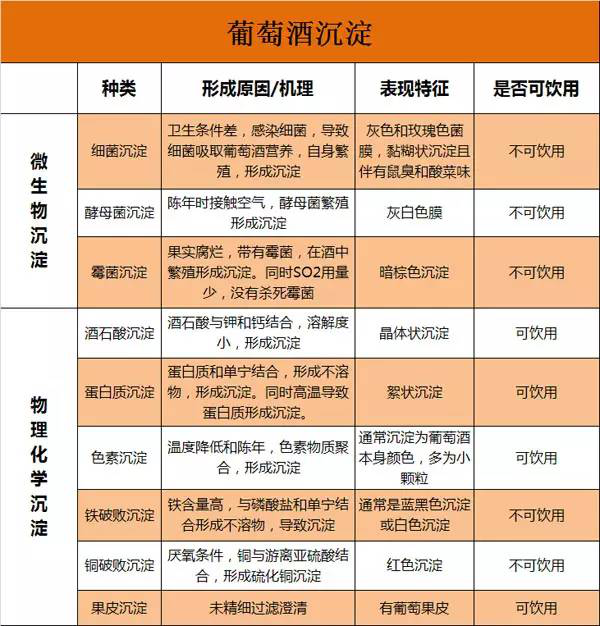 葡萄酒沉淀的因素有很多,按照機理可分為:微生物因素和物理化學因素。