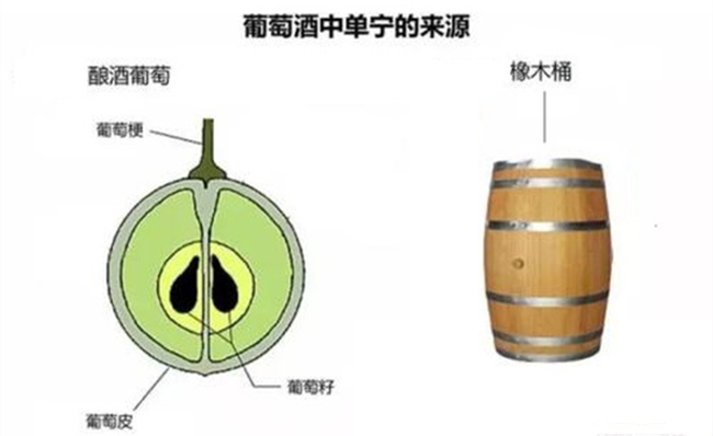 單寧,是葡萄酒中一個(gè)特殊味覺接觸,回想當(dāng)你吃葡萄時(shí),不小心咬到果核,大概就是這個(gè)味道。