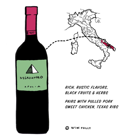 其實(shí),在意大利語(yǔ)中,“Negro”意為“黑色”,“Amaro”則意為“苦味”,可以想象,它的果皮顏色深邃且含有豐富的單寧。因此,重酒體的黑曼羅也經(jīng)常會(huì)與普里米蒂沃(Primitivo)進(jìn)行混釀,來降低單寧的厚重感,并增加諸如紅色水果的甜美香氣。