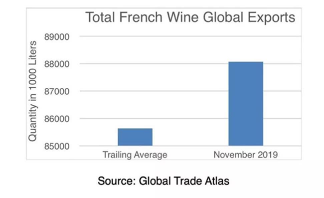 目前的關(guān)稅在迫使歐盟執(zhí)行DSB(即WTO爭端解決實(shí)體)建議方面是無效的。在實(shí)施關(guān)稅的頭一個月,法國葡萄酒貿(mào)易的全球出口卻大幅增長,恰好說明了這一點(diǎn)。法國葡萄酒的世界買家中,就有中國的身影。