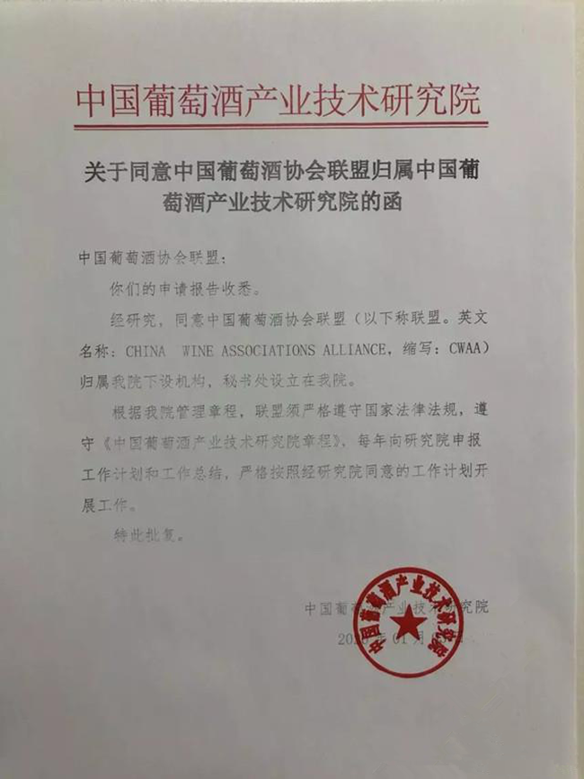 為了進(jìn)一步推動(dòng)聯(lián)盟工作,營造更加良好的工作環(huán)境和合理合法的開展工作,近日,中國葡萄酒產(chǎn)業(yè)技術(shù)研究院審批通過中國葡萄酒協(xié)會(huì)聯(lián)盟歸屬中國葡萄酒產(chǎn)業(yè)技術(shù)研究院領(lǐng)導(dǎo),秘書處設(shè)立在中國葡萄酒產(chǎn)業(yè)技術(shù)研究院。今后聯(lián)盟工作將在中國葡萄酒產(chǎn)業(yè)技術(shù)研究院的直接領(lǐng)導(dǎo)下開展工作,報(bào)備工作計(jì)劃和工作總結(jié)。