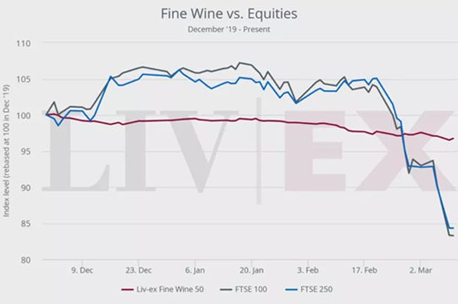 3月14日,liv-ex發(fā)布了一周葡萄酒交易市場報(bào)告,報(bào)告稱在全球疫情蔓延情況下,上周全球股市遭受嚴(yán)重打擊,但優(yōu)質(zhì)葡萄酒卻一直相對穩(wěn)定。