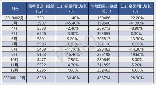 近一年中國(guó)葡萄酒進(jìn)口情況統(tǒng)計(jì)表