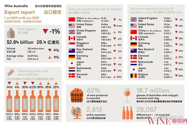 8月5日,澳大利亞葡萄酒管理局發(fā)布截至2020年6月的最新出口報告。