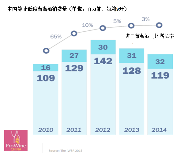上周在ProWine China的展覽會(huì)上,引用國(guó)際葡萄酒及烈酒研究機(jī)構(gòu)的數(shù)據(jù)來(lái)說(shuō)明,中國(guó)市場(chǎng)是如何在2010年到2011年之間實(shí)現(xiàn)快速增長(zhǎng),到2012年達(dá)到頂峰,又是如何在過(guò)去的兩年里開始回落的。
