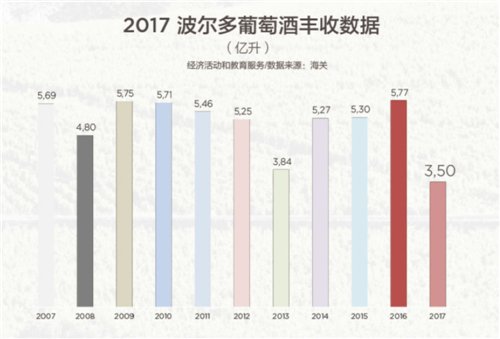 2017波爾多葡萄酒的年份報告正式出爐,報告顯示,盡管2017對于葡萄的生長來說天氣惡劣,整體葡萄豐收3.5億公升,相比2106年,整體產量明顯下降。