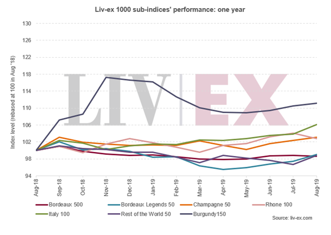 本月,Liv-ex 1000指數(shù)收于359.71點(diǎn),較上個(gè)月上升0.57%。 在分項(xiàng)指數(shù)中,世界其它酒區(qū)50的升幅最大(2.29%),其次是意大利100(2.14%)。