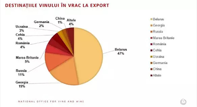 白俄羅斯、格魯吉亞以及俄羅斯進(jìn)口的葡萄酒總量占摩爾多瓦出產(chǎn)散裝葡萄酒總量的77%。格魯吉亞散裝葡萄酒出口增長(zhǎng)(+34%),捷克共和國(guó)和中國(guó)的進(jìn)口量保持穩(wěn)定,而德國(guó)(-55.3%)、羅馬尼亞(-43.7%)、烏克蘭(-43.5%)以及白俄羅斯(-2.7%)的進(jìn)口量有所下降。