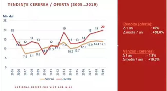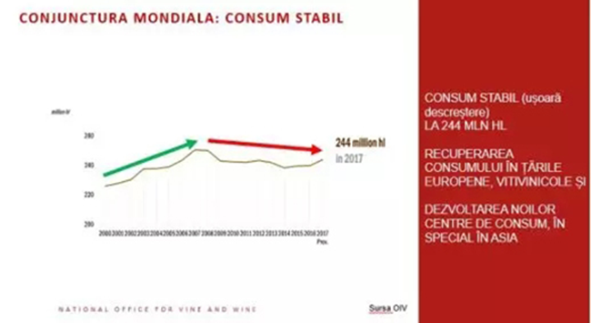 在過(guò)去14年中,全球盛產(chǎn)葡萄酒,且十年來(lái)葡萄酒消耗量陷入停滯,導(dǎo)致葡萄酒供大于求。摩爾多瓦共和國(guó)更是連續(xù)兩次取得創(chuàng)紀(jì)錄的豐收,并設(shè)法保持主要出口指標(biāo)相對(duì)穩(wěn)定,出口量小跌但影響甚微。