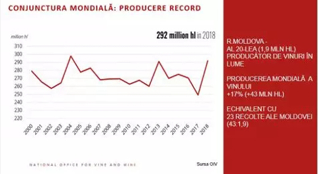 不僅是摩爾多瓦共和國(guó)正在經(jīng)歷葡萄酒生產(chǎn)過(guò)剩。2018年全球葡萄產(chǎn)量也達(dá)到了創(chuàng)紀(jì)錄的水平(+17%,即430萬(wàn)千升),增長(zhǎng)量相當(dāng)于摩爾多瓦共和國(guó)23年的葡萄收獲量。
