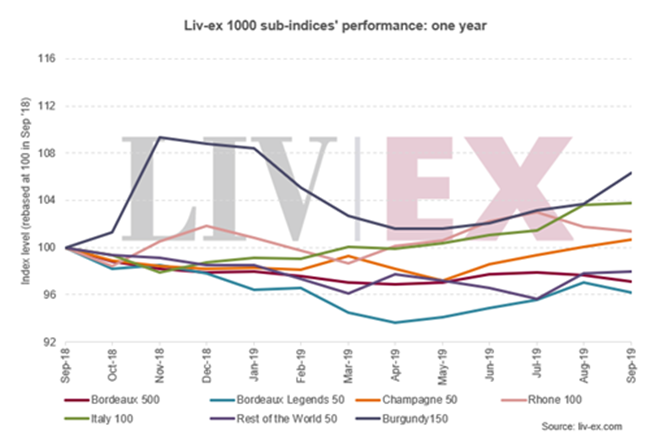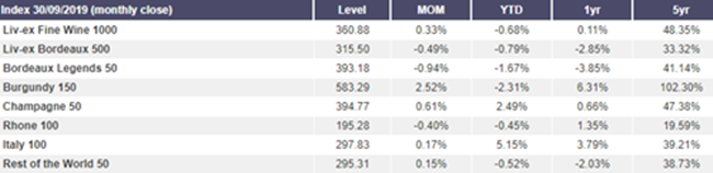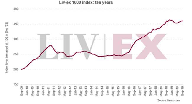 2019年至今,在,Liv-ex 1000(最廣泛衡量優質葡萄酒市場表現的指數)下跌了0.7%。 該指數在9月份上升0.3%,收于360.88點。