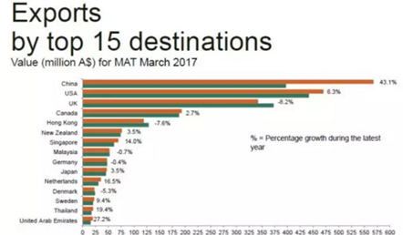 澳大利亞葡萄酒 管理局(Wine Australia)于2017年4月發(fā)布最新出口報(bào)告。報(bào)告顯示,在過去一年里,澳大利亞葡萄酒對(duì)中國大陸出口持續(xù)走強(qiáng),價(jià)量齊升!中國大陸依然保持澳大利亞葡萄酒出口額第一大市場的重要地位。 截止到2017年3月底的一年內(nèi),澳大利亞對(duì)中國大...