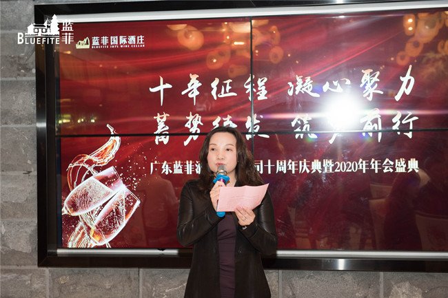 廣東藍菲酒業有限公司總經理曾玲女士也對公司一年的發展進行了總結:2019年,我們在壓力和動力中努力拼搏,銳意進取,用整整一年的付出、汗水和打拼,換來可喜的成績。隨著公司發展規模的不斷壯大,我們有了3000平的恒溫倉庫、新升級的展廳、酒窖等等;我們重視藍菲品牌的建設與發展,包括央視的廣告投放、倉儲中心的宣傳片等等;我們重視客戶的需求,公司旗下增加了洋酒和更多性價比高的新款葡萄酒;目前我們藍菲的綜合實力都比同行更具優勢和競爭力!2020年我們要繼續保持良好的工作作風,將以加倍的努力去推進并達成公司的業績目標,讓藍菲再上新的臺階!