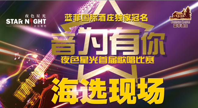 由東莞市藍菲酒業有限公司獨家冠名的,夜色星光音樂餐吧主辦的《音為有你》夜色星光首屆歌唱大賽全面啟動,初賽于8月9日-11日在廣州大道北佳潤廣場盛大舉行!來自五湖四海的100多個音樂人“音”為愛好而相聚在一起...